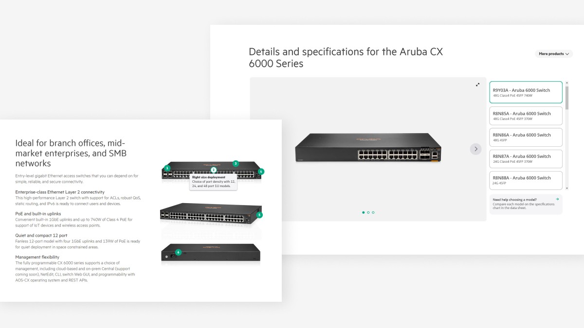 To lead the visual and functional evolution of the global Aruba Networking web ecosystem, balancing high-end marketing storytelling with the design of utility-driven interactive tools. Serving as the primary digital design consultant for the broader brand ecosystem, I architected high-performance web layouts and lead-generation tools that culminated in a comprehensive global rebrand. This ensured a unified, authoritative presence across all enterprise touchpoints—from high-traffic campaign landing pages to community-driven platforms.